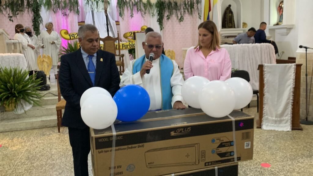 Cabe destacar que antes de iniciar la misa la primera autoridad del municipio hizo entrega de un aire acondicionado al padre Dixon Montero, quien agradeció esta donación en nombre de todos los feligreses que asisten consuetudinariamente a las diversas actividades religiosas que se desarrollan en la iglesia.