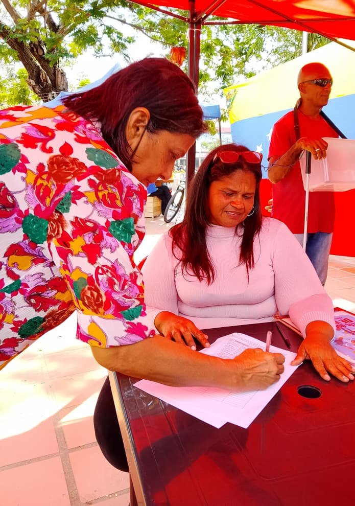 Los concejales del Partido Socialista Unido de Venezuela (Psuv) en el municipio Lagunillas, Argenis Montero y Verónica Palmar, acompañaron la jornada de recolección de firmas realizada en la Plaza Bolívar, donde más de mil doscientas personas rubricaron su respaldo al presidente Nicolás Maduro y a la primera dama Cilia Flores, así como su rechazo al ataque estadounidense que dejó un saldo de cien víctimas en territorio venezolano.