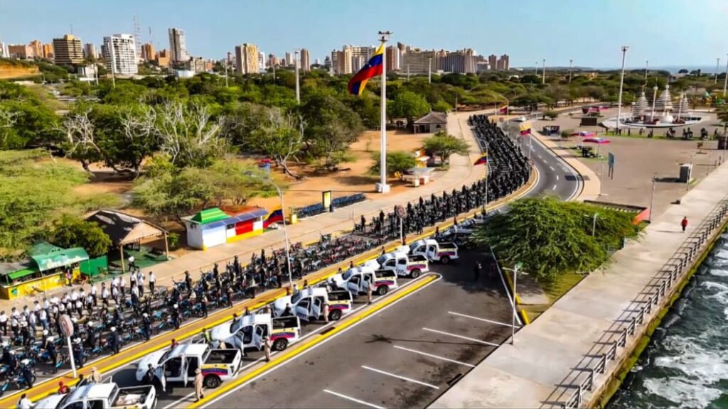 La iniciativa incluyó la entrega de equipamiento táctico y tecnológico, entre ellos 50 patrullas, 402 motocicletas, 121 cámaras de televigilancia y 201 teléfonos inteligentes conectados al sistema de emergencias VEN 911, con el objetivo de mejorar la capacidad de respuesta ante situaciones delictivas y de atención social.