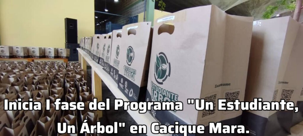 Este miércoles 22 de noviembre desde la Escuela Técnica “Vicente Lecuna” de la Parroquia Cacique Mara del municipio Maracaibo; el Ministro para el Ecosocialismo Josué Lorca junto a la ministra de Educación Yelitze Santaella acompañados por el equipo de Gestión Ecosocialista del estado Zulia, dieron inicio a la primera fase del programa “Un Estudiante, Un Árbol” donde fueron entregado más de 160kit para la atención de una población de más 1.000 estudiantes de diferentes grados educativos.
