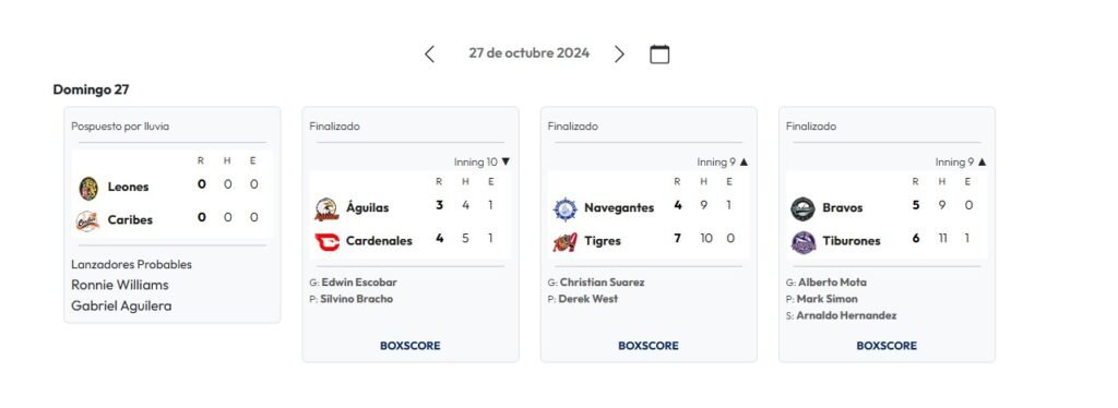 Resultados de la Jornada de la LVBP: 26 de Octubre de 2024